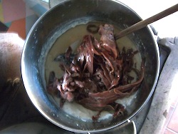 Cuocete finché le acciughe non si saranno completamente disfatte creando una crema.